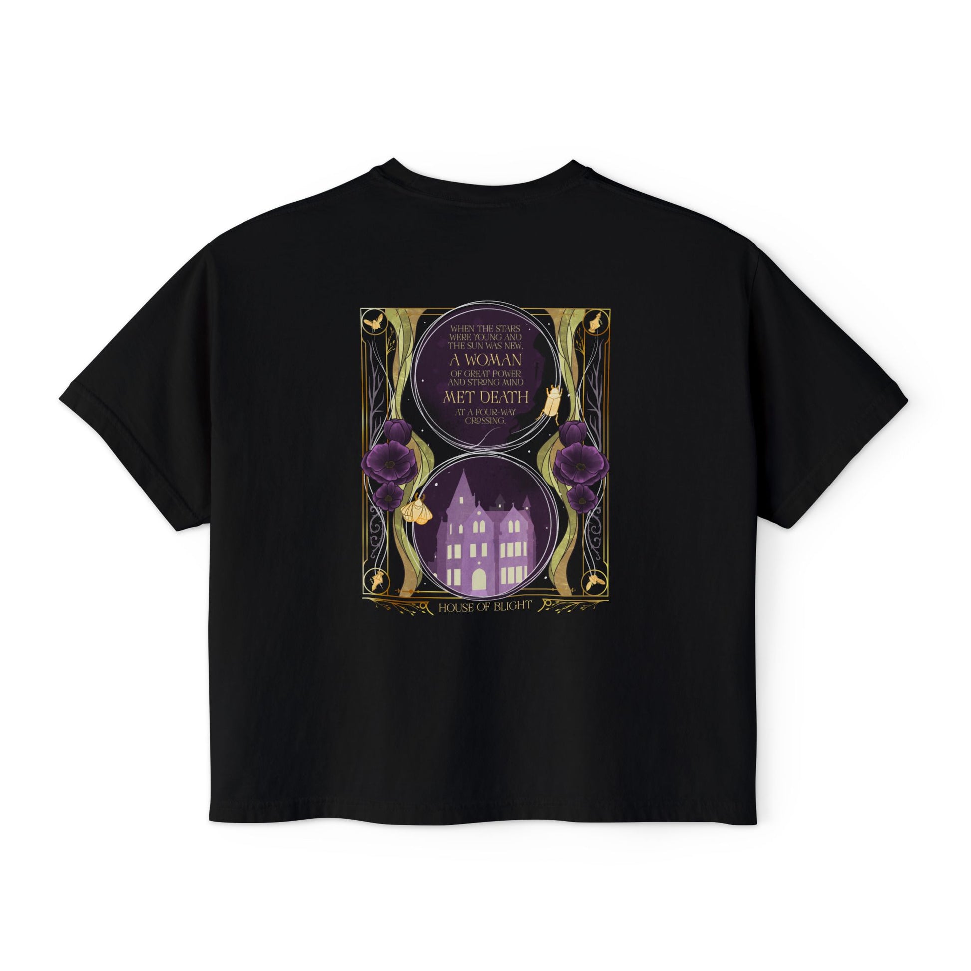 This two-sided gothic romantasy tee is part of our officially licensed collection based on House of Blight by author Maxym M Martineau!