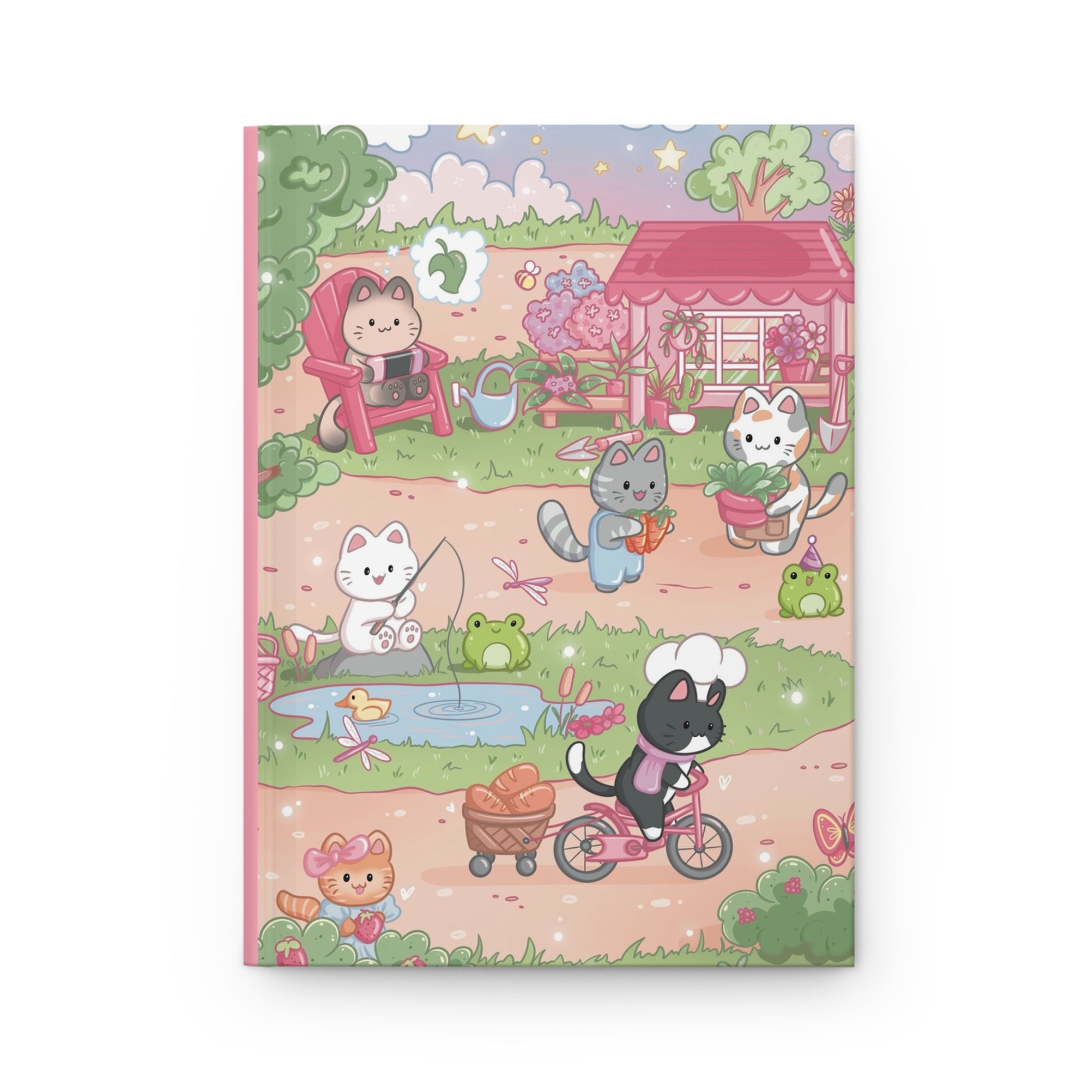 Take our cozy gamer cats along wherever you go with this velvety soft matte hardcover journal! It's giving the best sort of pink aesthetic in our full illustrated scene of adorable cats going about their daily gamer cat duties - gardening, fishing, cooking and more! Snag one for yourself or as a fun gift for a gamer friend.