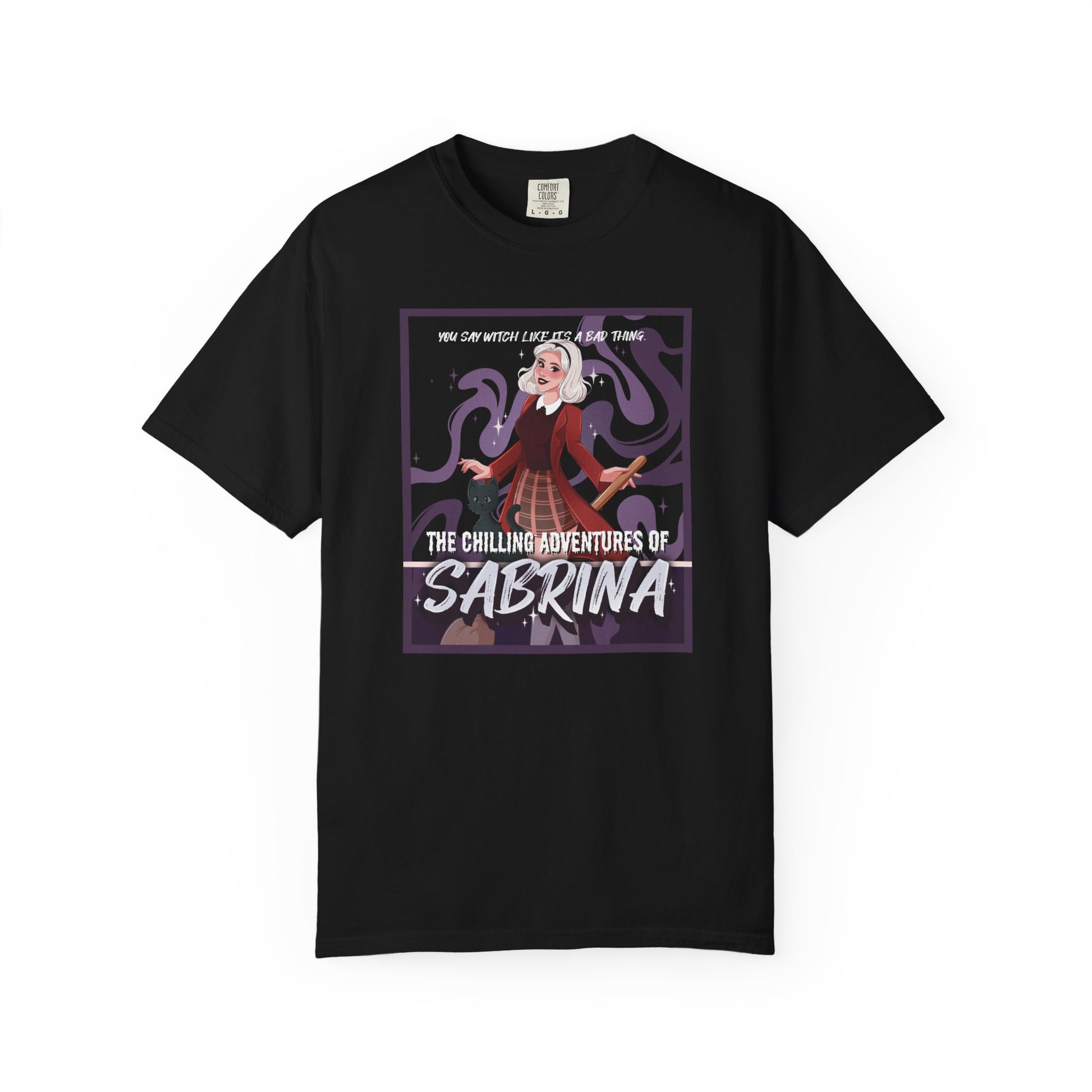 Spooky Sabrina witch art graphic tee. Comfort Colors brand.